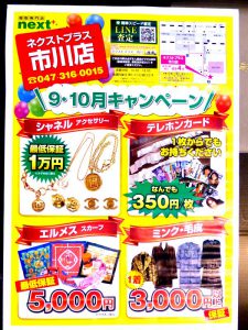 ネクストプラス市川店9・10月買取キャンペーン開始